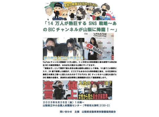 2025/09/30こちらのブログにも何度か登場しているBICチャンネルというYouTubeチャンネルをご存じでしょうか? 株式会社BICという大阪府の豊中市にある鈑金塗装工... -