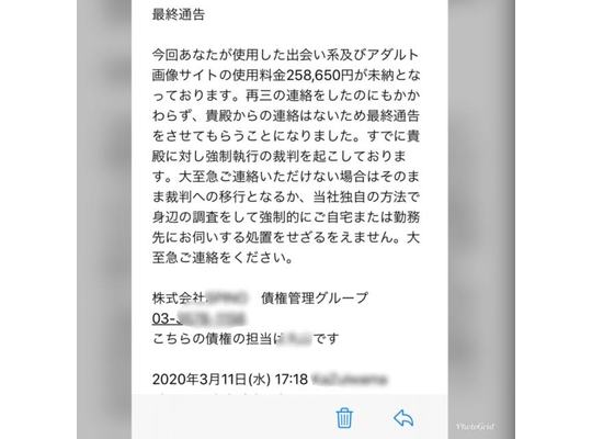 2020/03/17なんと、なんと、なんと 私のところに 最終通告なる架空請求詐欺のメールがきました。(笑) 最終どころか初めてこんなメール来たんだが??これどういうこと? 内... -