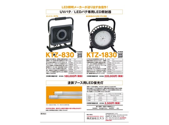 2020/03/24今回は真面目に自動車鈑金塗装業者らしいことを書きます 以前のブログ にて量産が決定していた、弊社のパートナーである(株)エスコ からの新商品 UV対応LED照射... -
