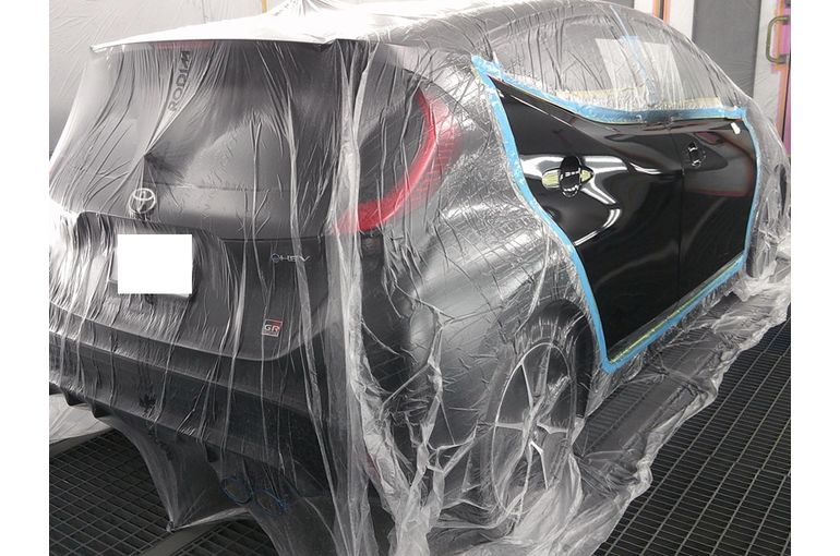 トヨタアクアGR右フロントドア修理(動画あり)